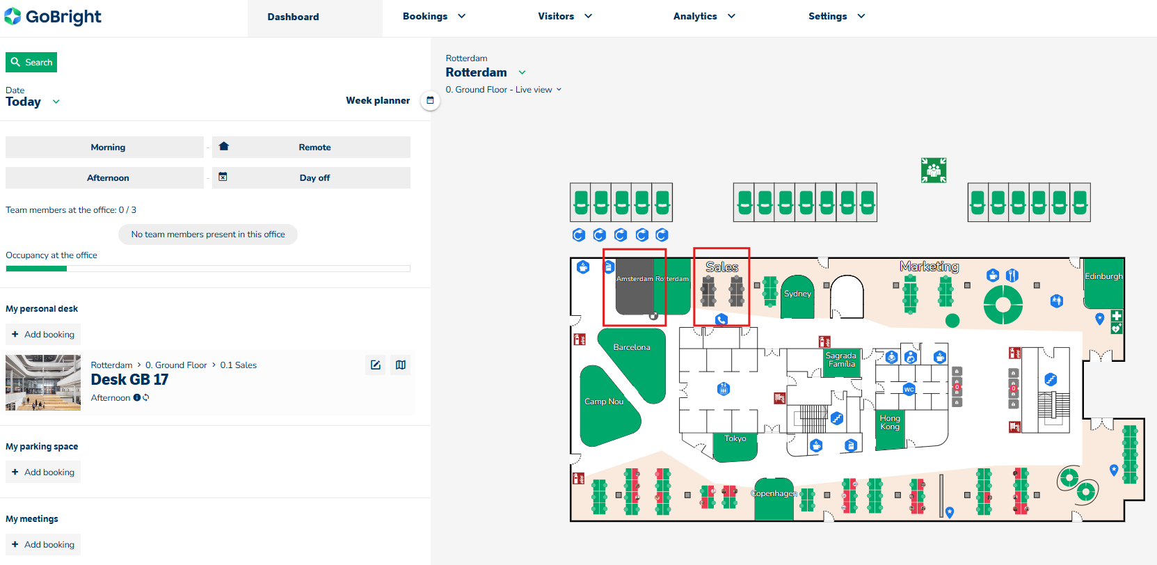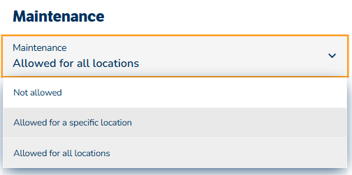 For at få adgang til denne side under fanen »Bookinger« skal en GoBright aktivere en ny tilladelse i din brugerrolle. Denne tilladelse giver adgang til vedligeholdelsestilstand og kan konfigureres for hvert sted og tildeles bestemte brugere.