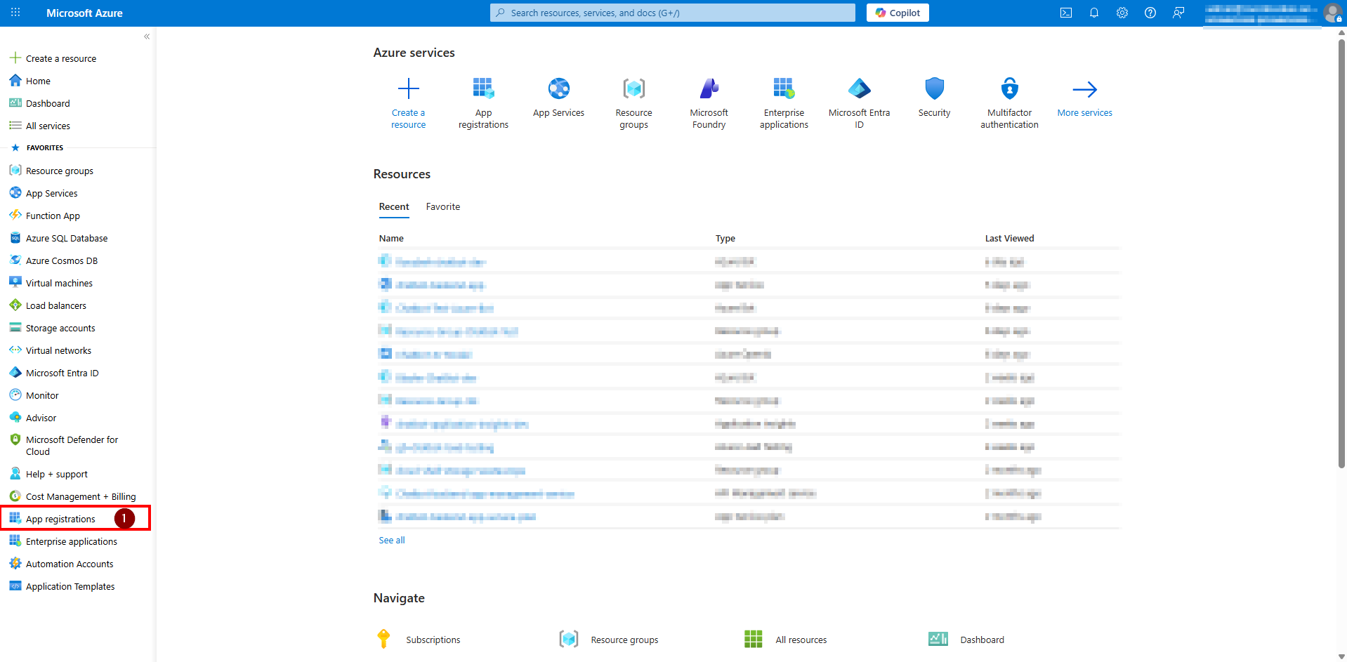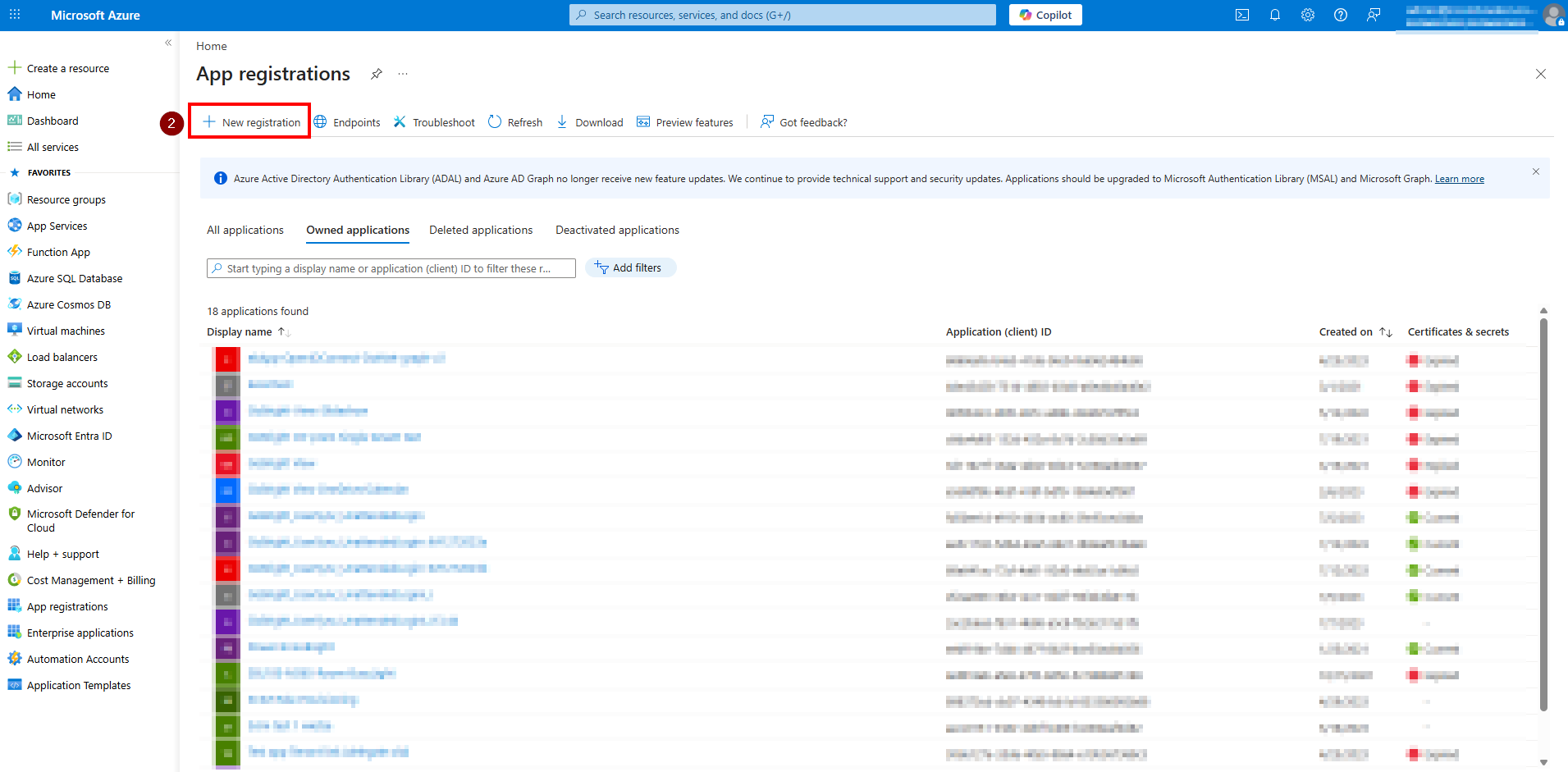 1. Gå til Azure-portalen > Azure Active Directory > App-registreringer