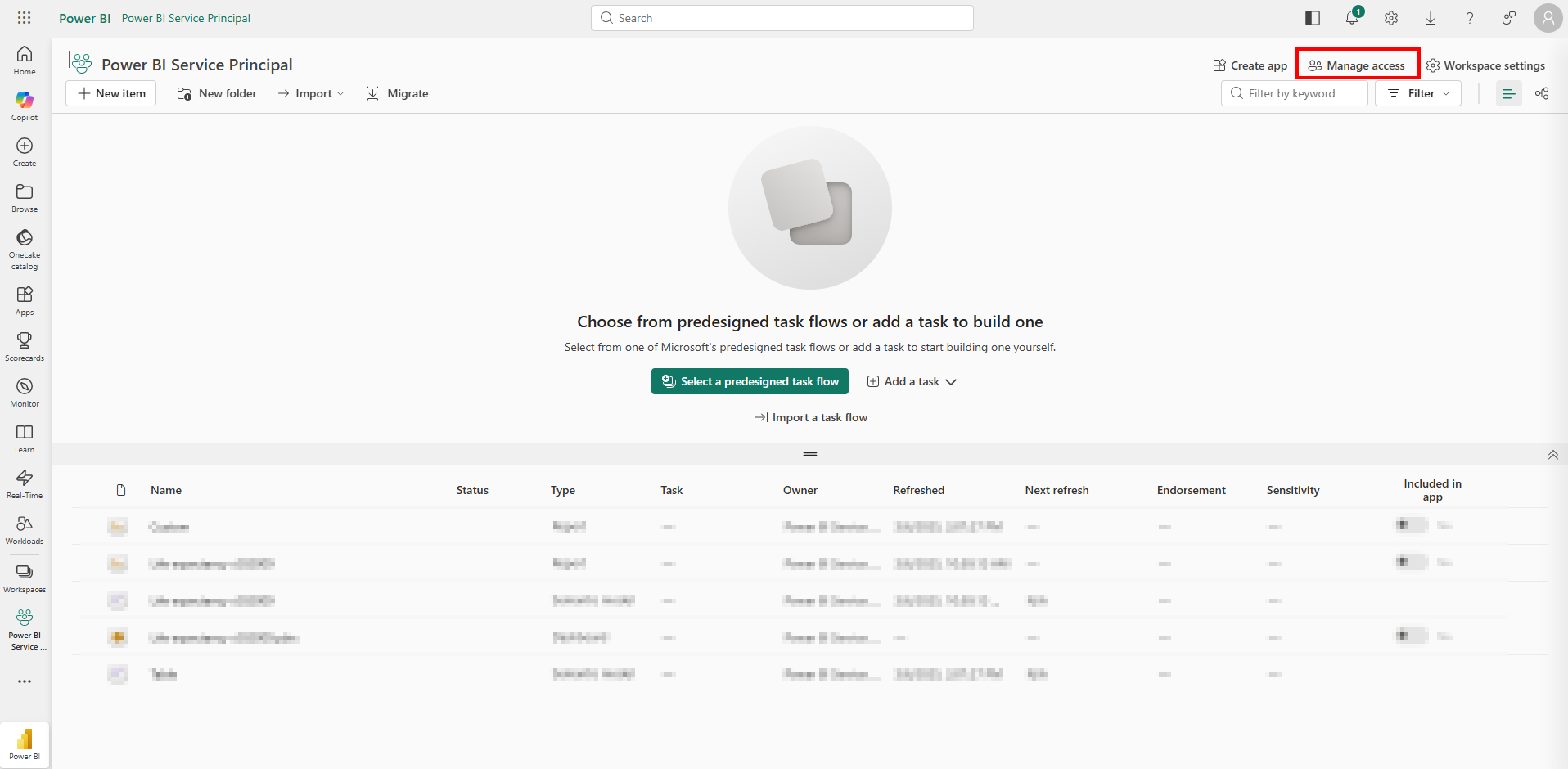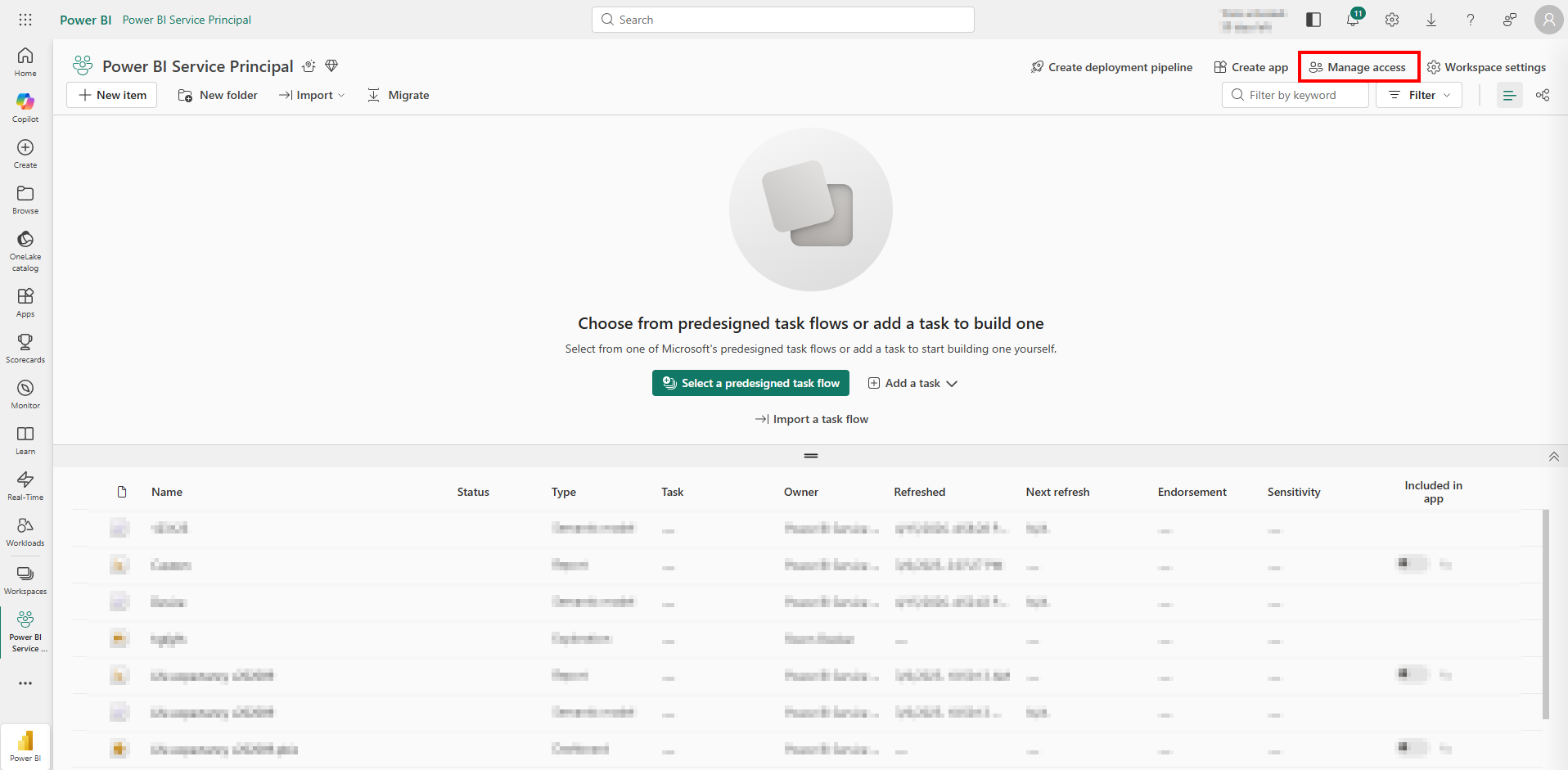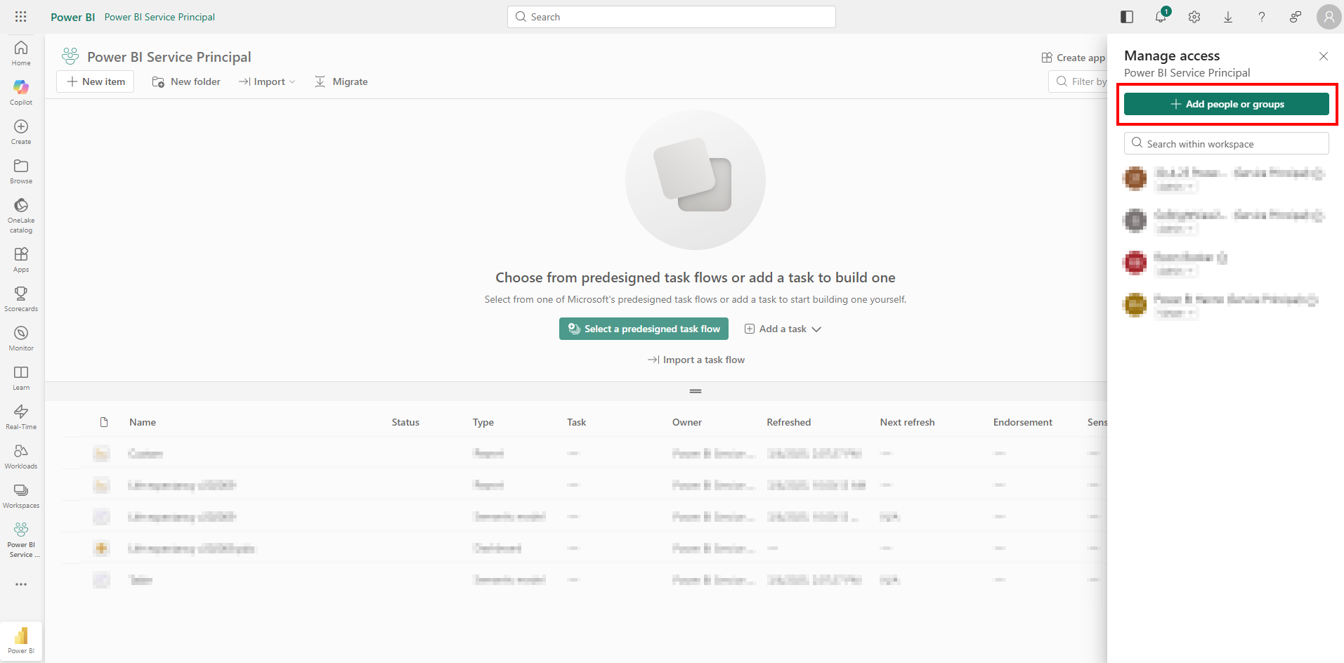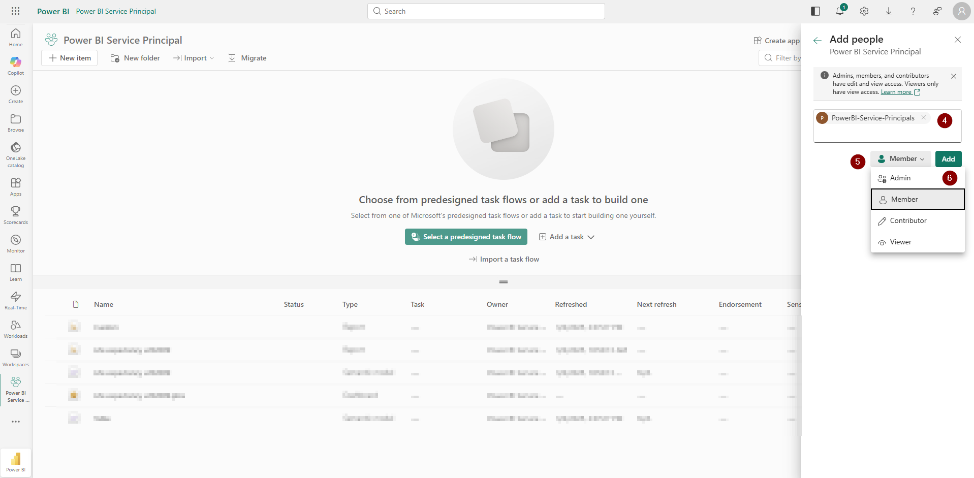 - Sørg for, at serviceprincipalen/sikkerhedsgruppen har adgang til arbejdsområdet