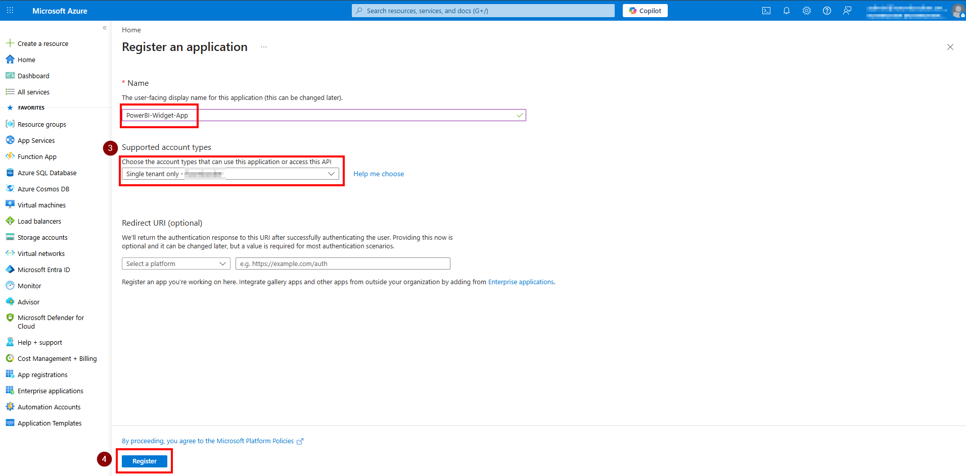 - Navn: PowerBI-Widget-App (eller det navn, du foretrækker)