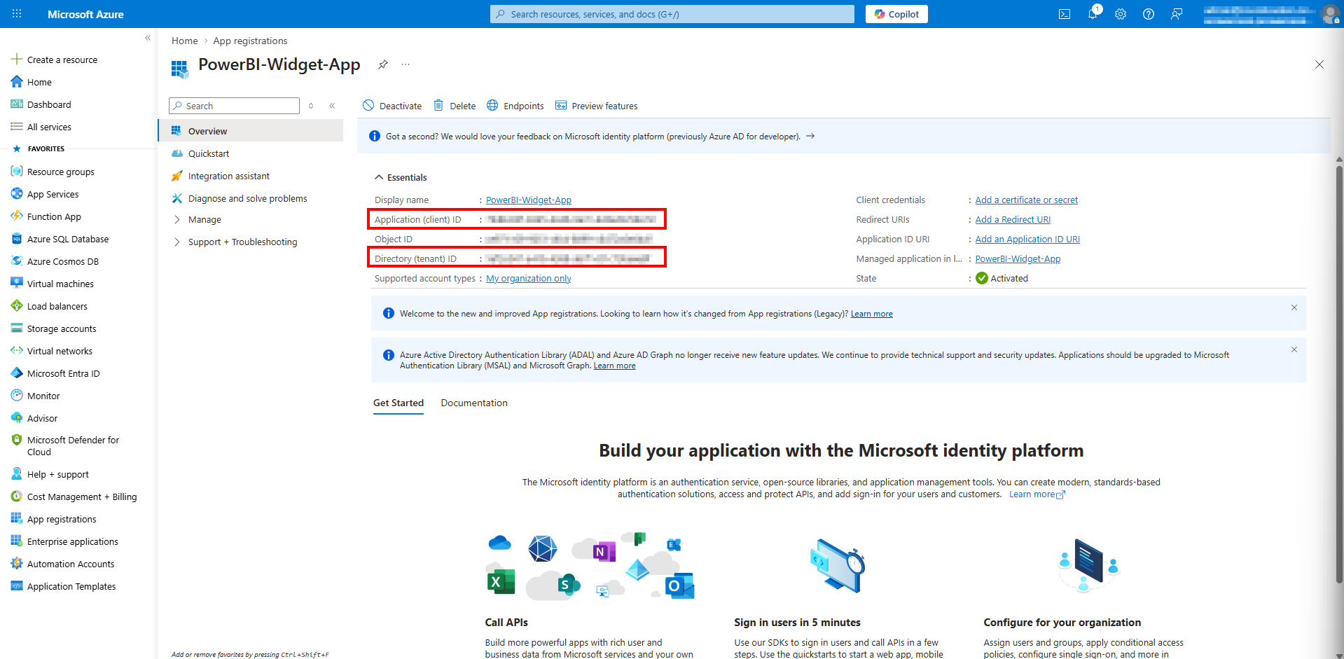 - Eksempel: PowerBI-Widget-App (AppId: 12345678-1234-1234-1234-123456789abc)