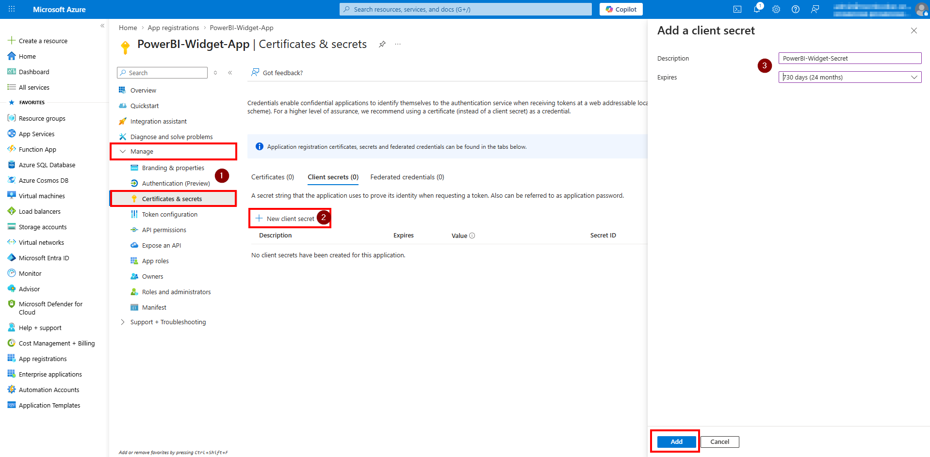 2. Klik på +Ny klienthemmelighed