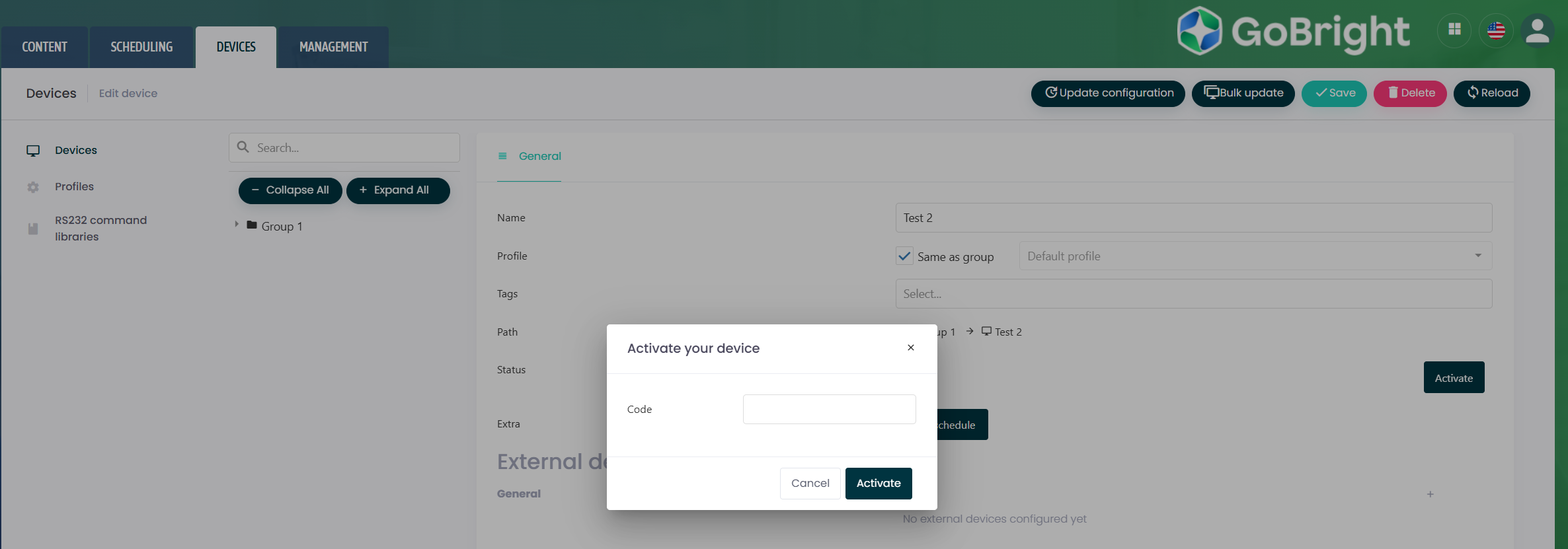 For mere information om, hvordan du aktiverer en enhed, kan du læse artiklen Tilføjelse og aktivering af en enhed.