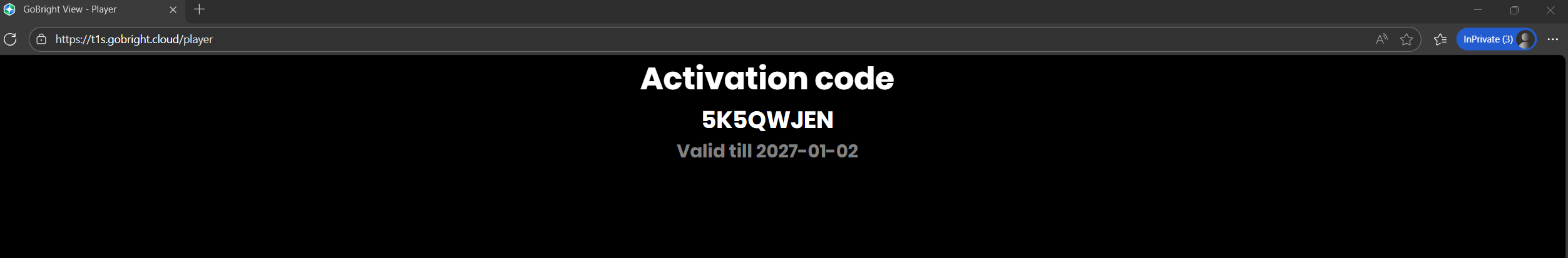 For at få aktiveringskoden skal du åbne en ny browserfane og indsætte linket gobright.