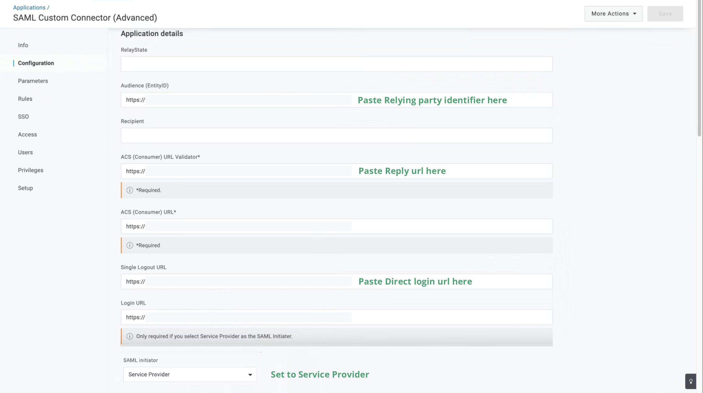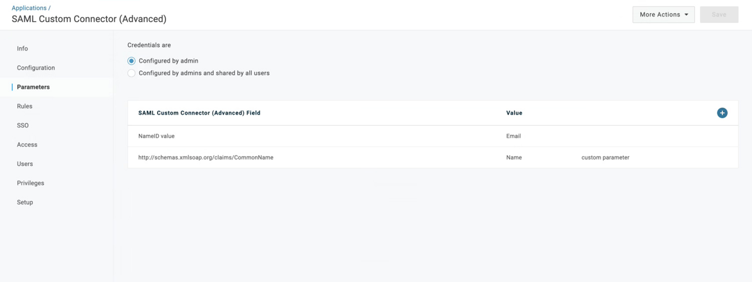 - Legg til en applikasjon "SAML Custom Connector (Advanced)"