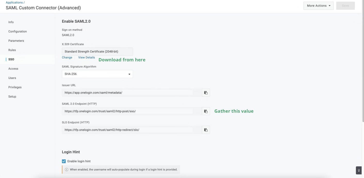 5. Konfigurer SSO i Onelogin-administrasjonsportalen