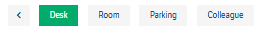 Den vanliga sökfunktionen hittar du längst upp till vänster. Välj bara vad du söker efter: ett skrivbord, ett rum, en parkeringsplats eller en kollega. Uppföljningsstegen för din sökning förklaras i nästa bild.