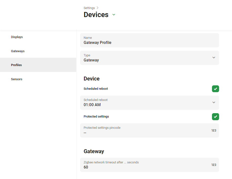 - Logga in på GoBright med ditt managerkonto och välj Inställningar > Enheter > Profiler.