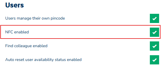 - Konfigurera NFC-id för en användare, följ stegen ovan som beskrivs i 'Konfigurera NFC per användare'