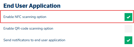 - Aktivera NFC-alternativ genom att kryssa i rutan