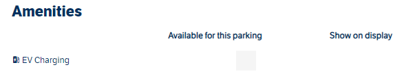 I avsnittet Alternativ kan du välja vilka bekvämligheter som ska finnas tillgängliga på parkeringsplatsen, t.ex. en laddningsstation för el.
