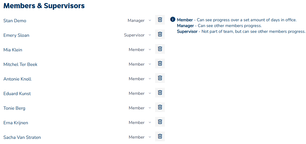 Medlemmar kan endast se sina egna framsteg och sin efterlevnad av det erforderliga antalet dagar på kontoret.