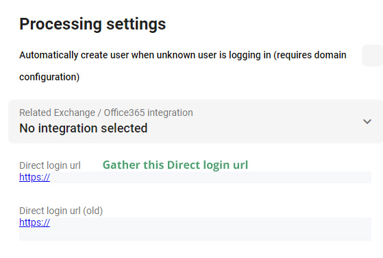 - Vid inloggningsadress klistrar du också in "Direkt inloggningsadress