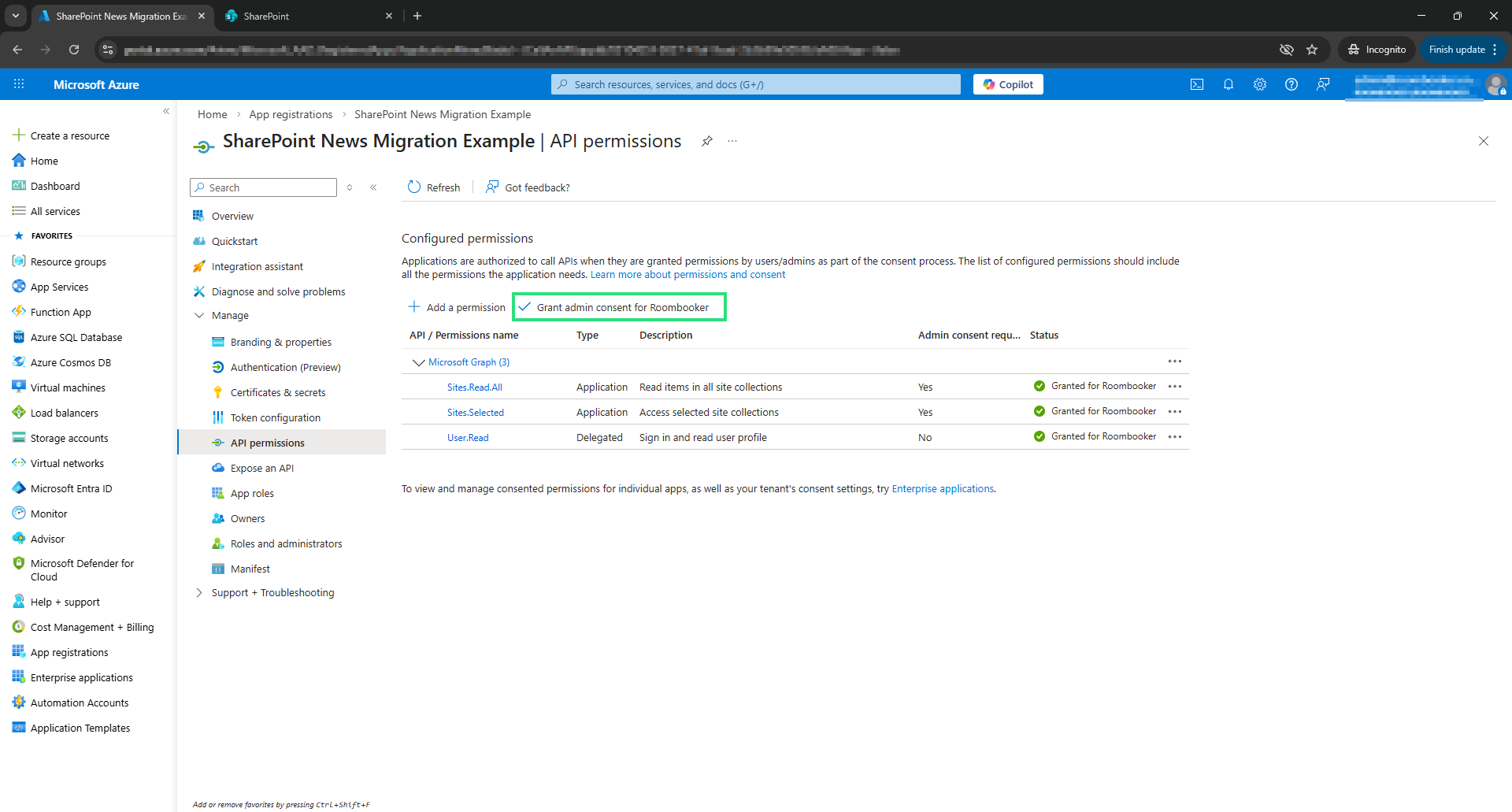 - Gå till ”API-behörigheter” i din Azure AD-appregistrering