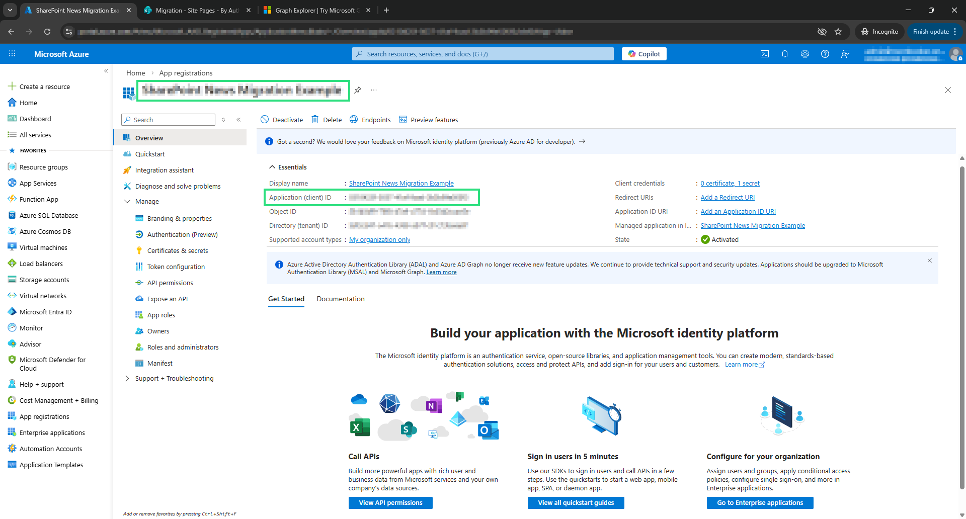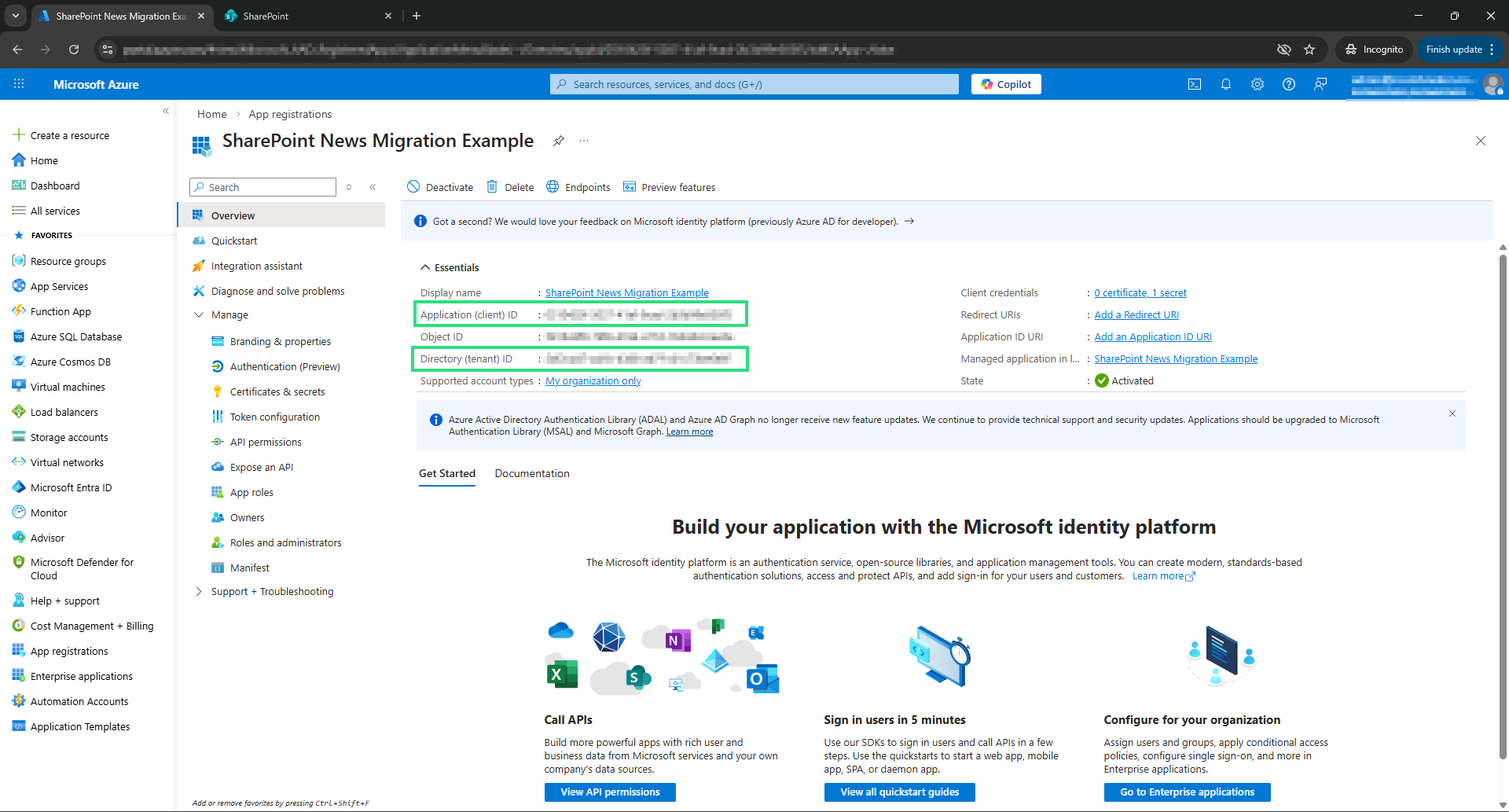 Kopiera följande värden från sidan ”Översikt” i din appregistrering: