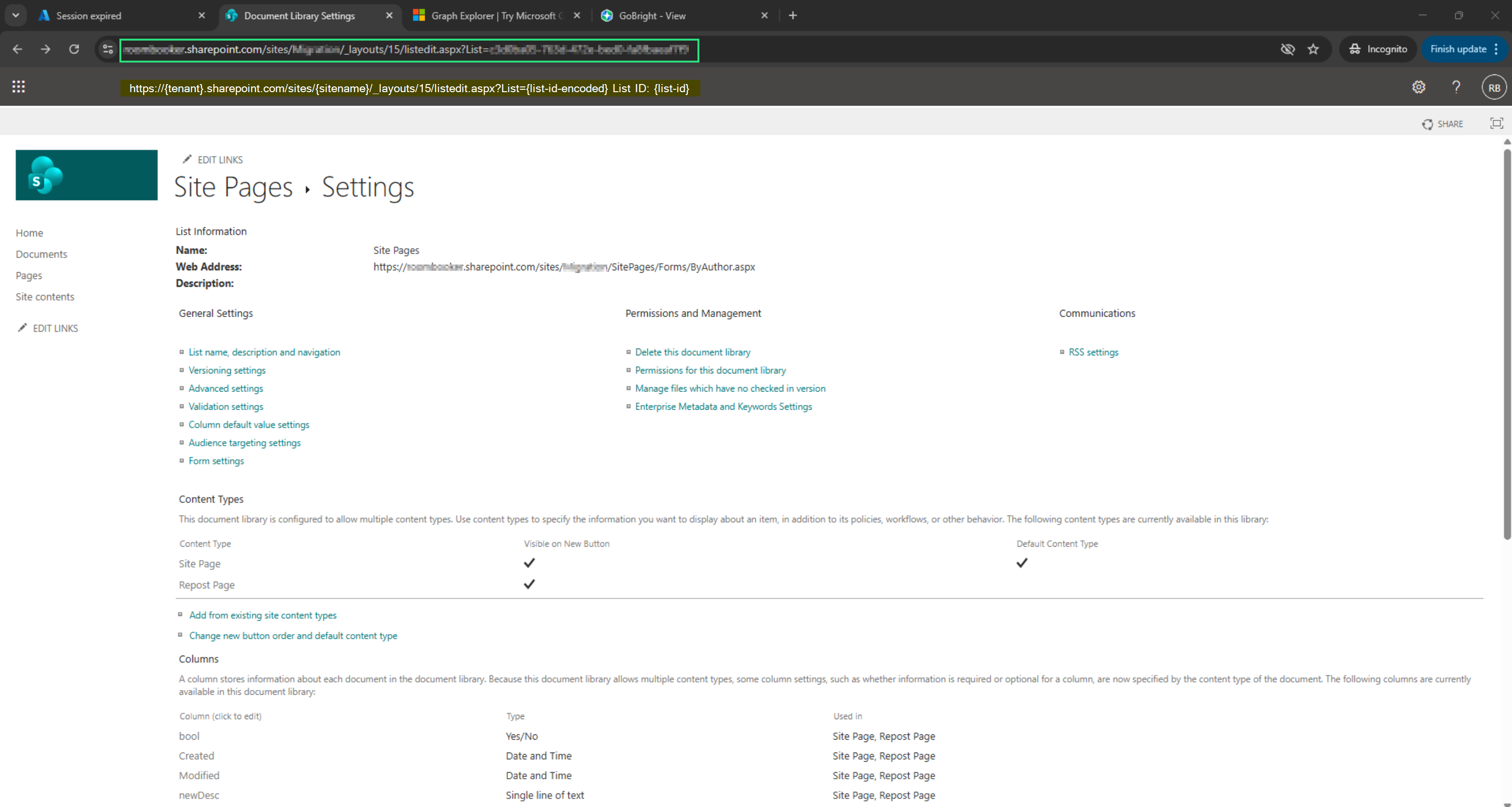 | SharePoint REST API (api/web) | Graph API (/sites/…/lists) |
