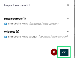 Om SharePoint-widgeten redan används och du importerar den enligt stegen ovan kommer den gamla widgeten att skrivas över.